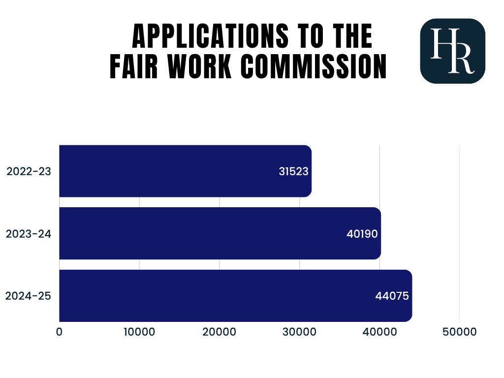 The numbers are staggering. Applications to the FWC have surged past 44,000 a year, with unfair dismissal claims alone hitting 16,500 – a 50 per cent increase on just two years ago.